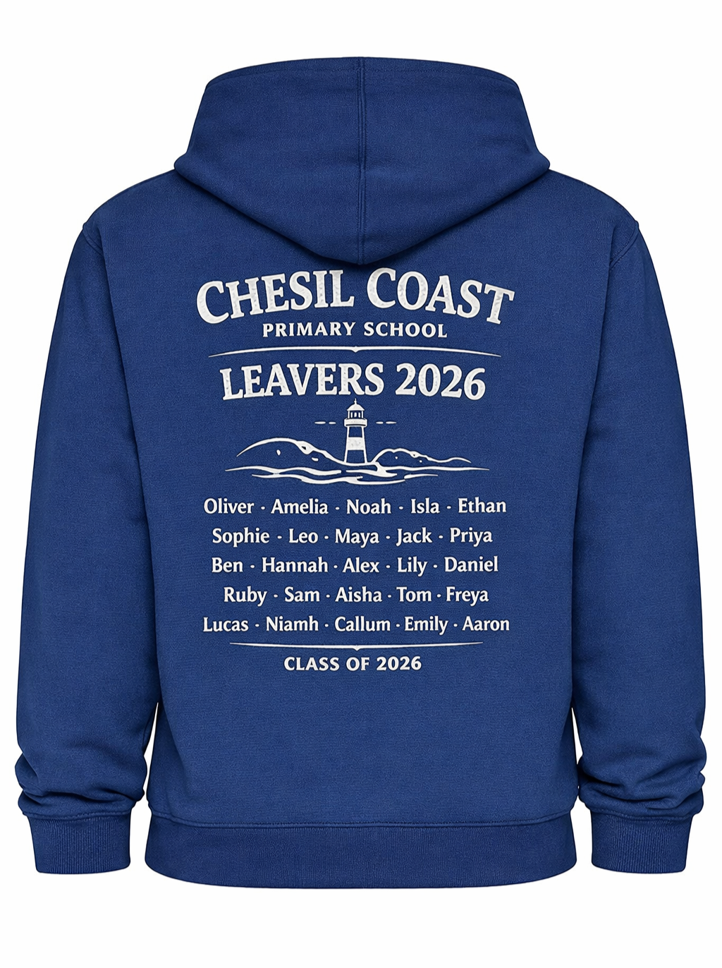 We offer a small, reliable range of hoodie styles that work well for school leavers, chosen for comfort, durability and consistent print results.
